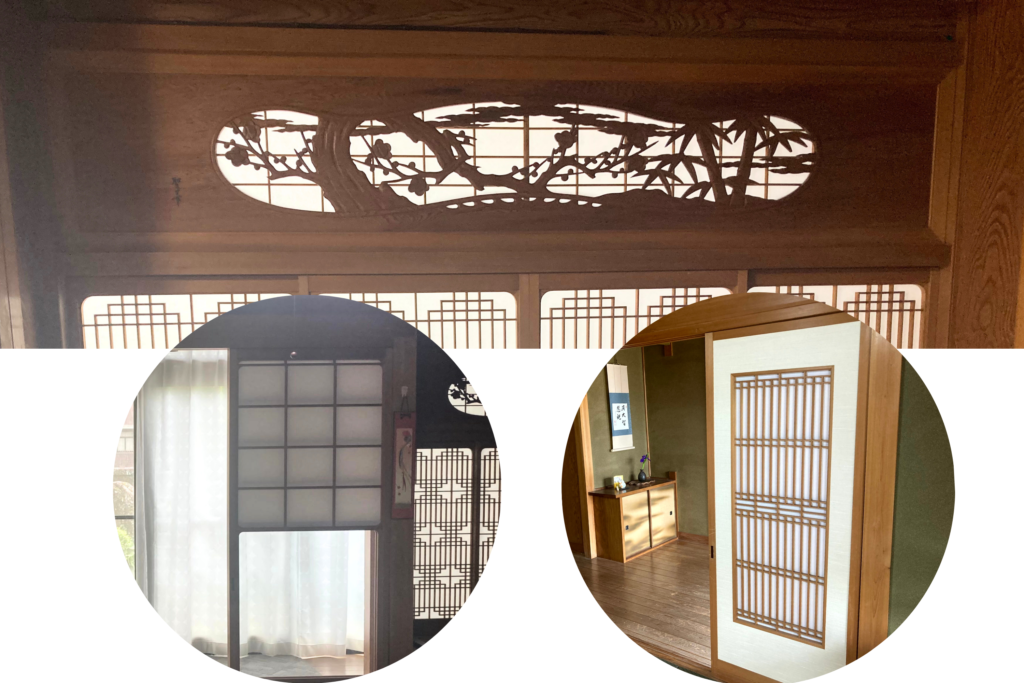 建替え前の家で大切にされていた美しい建具や欄間。