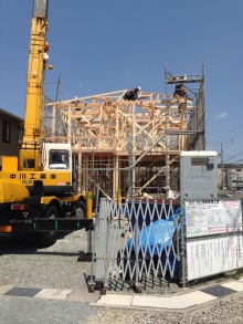 祝 上棟 ! 2013年4月8日 by morishita-admin こんにちは、 山下です。今日は、 S 様邸の上棟がありました。S 様とは、協力業者様の紹介でお会いしました。今でもはっきりと覚えているのですが、土地を決めるのがすごく早かったんです。希望のエリアを聞き、情報を集めました。15件?位の情報から、よさそうな土地を 5件ほど選びました。その足で、その5件を見に行き事務所に帰ってすぐ今回の土地を決められました。御主人もそうですが、奥様がすごかったんです。あの決断力にはびっくりしました。 私たちが、本当にいいの?と思ったくらい 笑そして今日、順調に上棟を迎えることができました。 お昼の写真です。 もう一枚 S 様 おめでとうございます。これから、本格的に木工事に入ります。これからも、どうぞよろしくお願い致します。