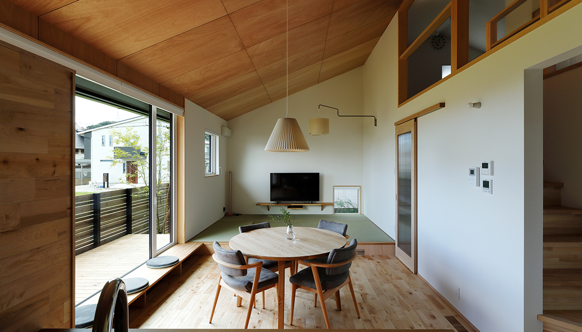 以前のように家族全員が一つの場所で同じ行動をすることが減り、リビングのあり方が変わりました。家族が集まるのはむしろ食事のとき。ダイニングこそが新しいだんらんの場です。広々としたダイニングで、家族みんなで食事を楽しみ、その後はそれぞれが本を読んだり、スマホを見たり、となりの空間でゴロンとする。近くにいながらも各自がリラックスして過ごせる空間として、新しいダイニングのあり方を提案します。