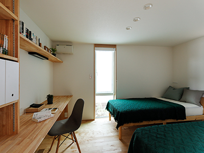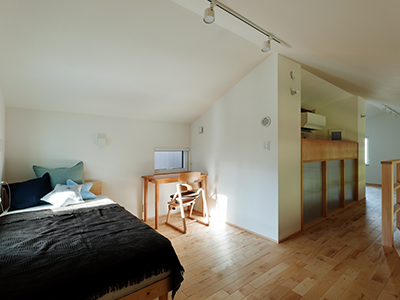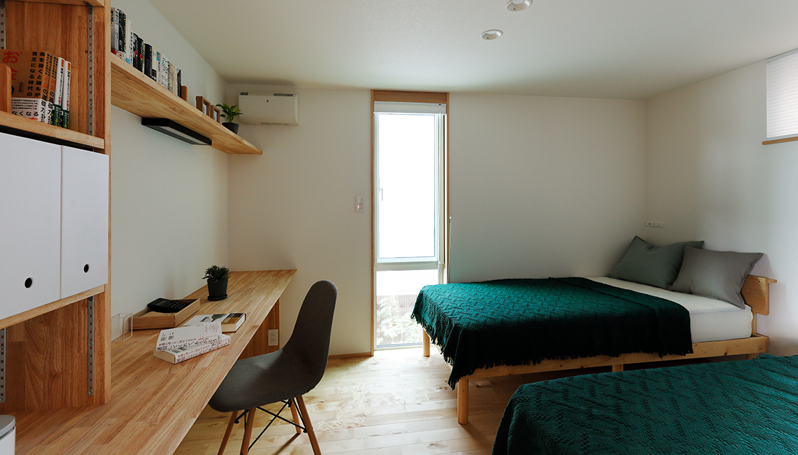 1階にある夫婦の主寝室には2m60㎝のカウンターを設置。書斎としても使えます。