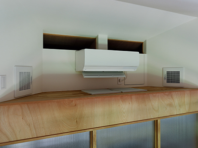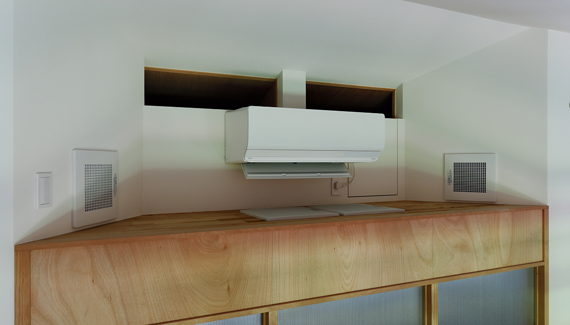 今回はホールエアコン式の全館空調システムを採用。夏期はこの1台で家全体を快適に。