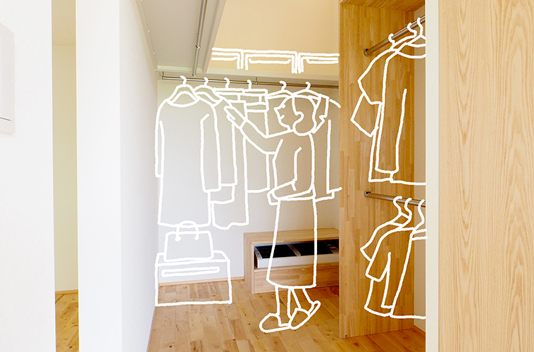平屋の最大の利点はすべての家事がワンフロアーで完結できること。そんな平屋暮らしの最大のメリットは残しつつ、子ども部屋や客室などのプラスαの機能を2階部分に加えました。夫婦の寝室を1階にすることで、暮らしはすべてを1階で完結。老後も安心して暮らせます。また、WICやランドリースペースなどの暮らしやすい生活動線と計画された収納によって家事時短を実現。忙しい1日の中でもほっとできる時間が生まれます。