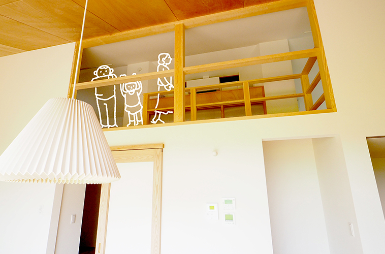 2階から見下ろしたLDK。この開放感はこの家のいちばんの魅力です。