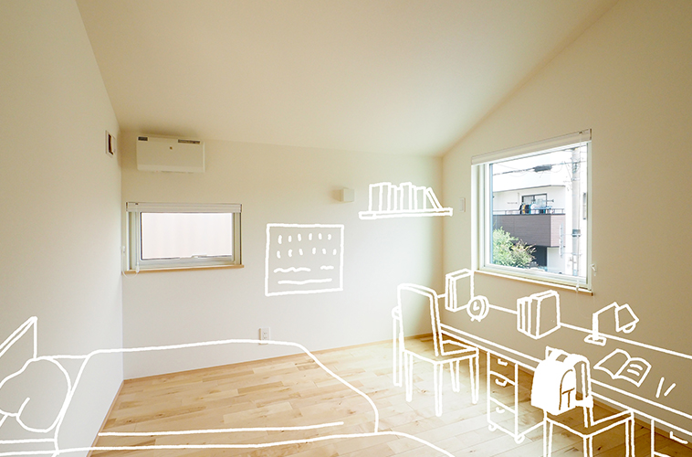 2階には多目的に活用できるフリースペースが2つ。扉をつけることもできます。