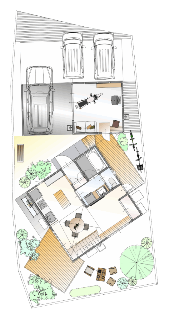斜め配置 と はなれ がつくる「4つの庭」