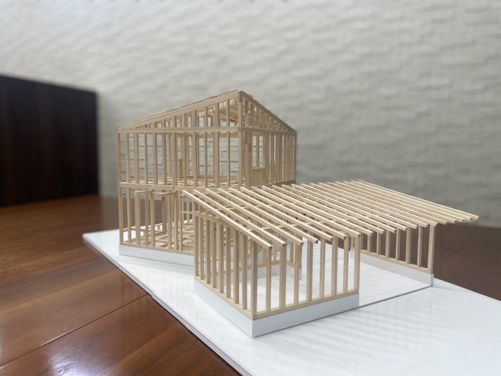 最大のみどころは、「はなれ」と「ガレージ」を組み合わせること。そして建物を小さくしコストを抑え、車・バイク好きの心をくすぐるガレージハウスを実現しました。