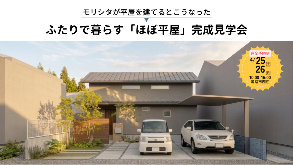 今回の見学会は、そんな「広すぎる家」を卒業し、大人ふたりが心地よく、自立して暮らすために建て替えた「ほぼ平屋」のお家です。