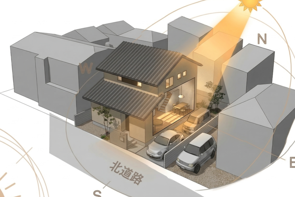 「北側道路で、三方を家に囲まれているから、明るい家は、無理かもしれない…」