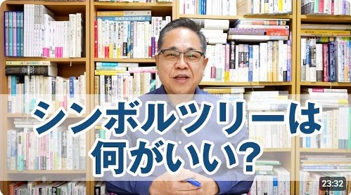 そして今日いちばん伝えたいのがここです。シンボルツリーを選ぶ方向性は、大きく3つあると言われています。ひとつ目は「樹木そのものの魅力」。花、紅葉、実、樹形です。桜のように花が一斉に咲く木、秋に紅葉する木、実がなって思わず眺めてしまう木、枝ぶりや葉の形が美しい木。松を植えれば和の雰囲気になるし、ヤシやガジュマルなら一気にトロピカル。モミの木はクリスマス文化と結びつく。こうしたイメージも魅力のひとつです。