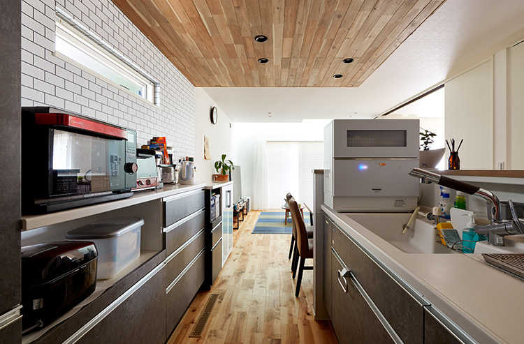 キッチンは毎日立つところだから、自分がいたくなる空間にしたくて、とてもこだわりました。お互い身長がちょっと高めなので、作業台の高さは標準より高くしてもらいました。標準だと少し低くて、食器を洗っているときなど、腰が痛くて辛かったんです。今は自分たちにあった高さになり、体の負担が少なくなったので助かっています。