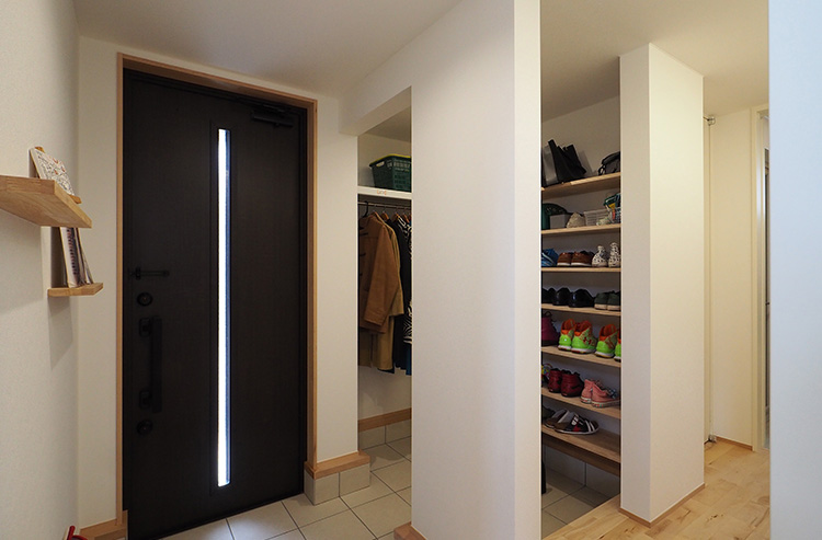 以前のアパートと比べると段差が少なくて掃除がしやすくなりました。トイレや洗面所が一段高くてちまちまとした掃除が増えていたんです。クローゼットにもドアがないのでホコリがたまらなくなって良いですね。あとは家全体が造作を含めて木目がそのまま出ていて、インテリアも浮かず見た目もかわいいのが気に入っています。