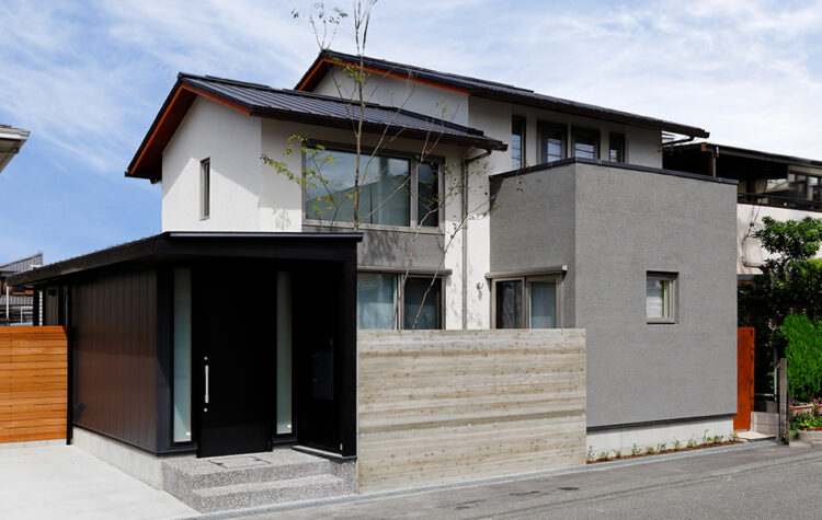 松尾和也先生による設計の家。狭小で変形した敷地でも、開放的で暮らしやすい間取りを実現しました。4つのブロックがリズムを生む外観も魅力です。